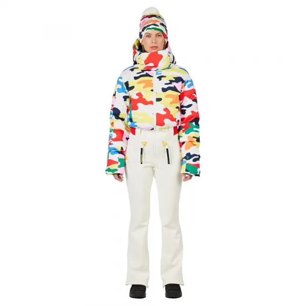 로시뇰 JCC 서브라임 여성 스키 수트는 프랑스 패션의 전설 장 샤를 드 카스텔바작의 컬러와 그래픽으로 눈 덮인 슬로프를 뜨겁게 달굽니다.