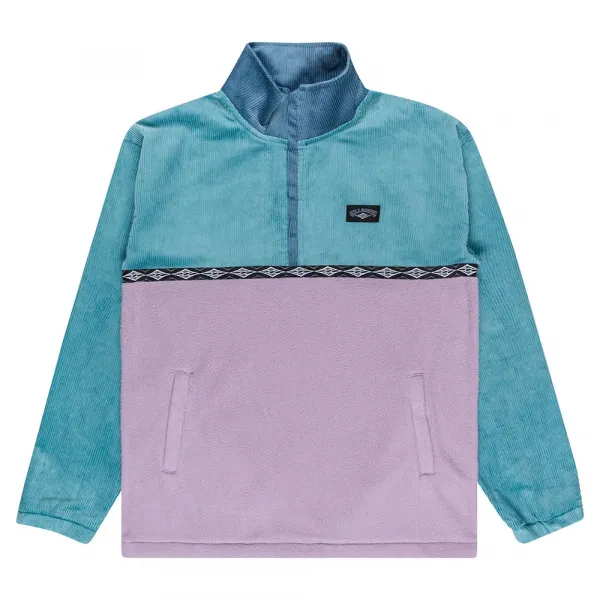 가슴, 어깨, 소매에 대비되는 코듀로이 원단을 사용한 컷 앤 소우 패널.