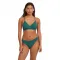이 비키니는 힙을 살짝 드러내는 하의와 뒤중심 봉제선으로 핏을 살린 디자인이 특징이며, 편안하게 착용 가능한 크로스 앞부분 브라렛 탑과 함께 매치됩니다.