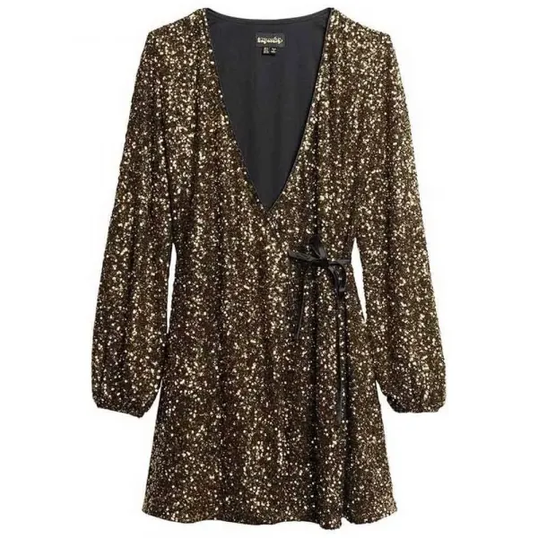 저희는 슬리브 스팽글 랩 미니 드레스로 한층 더 업그레이드하여 독특하고 돋보이는 제품을 선보입니다.