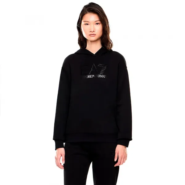 주요 특징: 이 절묘한 여성용 풀오버 후디는 가슴 부분에 팬시 스트라스 크리스탈로 정교하게 표현된 상징적인 EA7 로고가 돋보입니다.