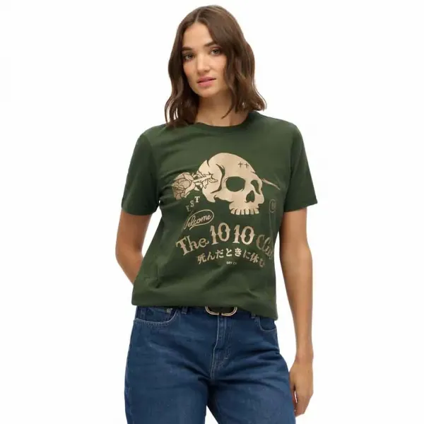 SUPERDRY Super Skull 티셔츠는 여성이 개성을 표현할 수 있도록 옷을 만드는 데 전념하는 브랜드의 증거입니다.