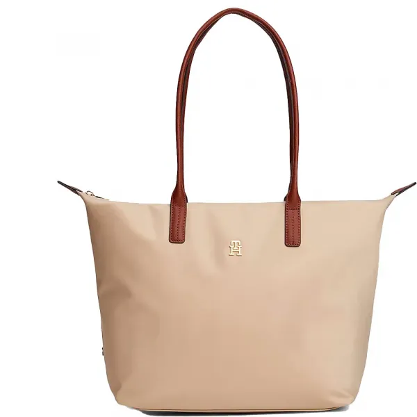 기술 사양: * 주요 소재: 합성 * 하드웨어: 폴리싱 처리된 골드 톤 메탈 * 잠금 방식: 지퍼 * 내부: 패브릭 안감 (지퍼 포켓 1개, 슬립 포켓 2개) * 브랜딩: Tommy Hilfiger 모노그램 플라크 Tommy Hilfiger 여성용 토트백.
