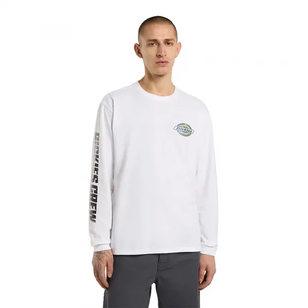 특징으로는 왼쪽 가슴의 디키스 아이콘 아트워크, 등 부분의 큰 핏 크루 프린트 아트워크, 소매 스크린 프린트, 그리고 디키스 우븐 사이드 심 라벨이 있습니다.