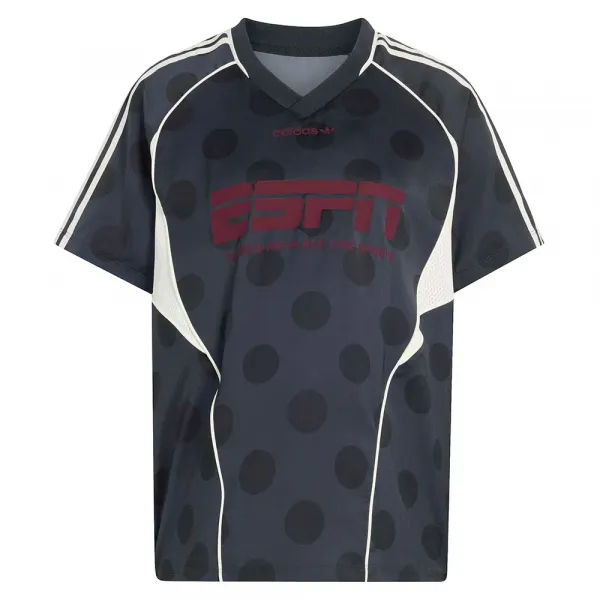 반팔과 브이넥 디자인이 특징인 이 저지는 레이어드하거나 단품으로 착용하기 쉬운 클래식한 스트릿웨어 미학을 제공합니다.