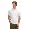 이 브라이트 화이트 반팔 리 셔츠는 주머니 없이 가슴에 톤온톤 자수 로고만 있습니다.