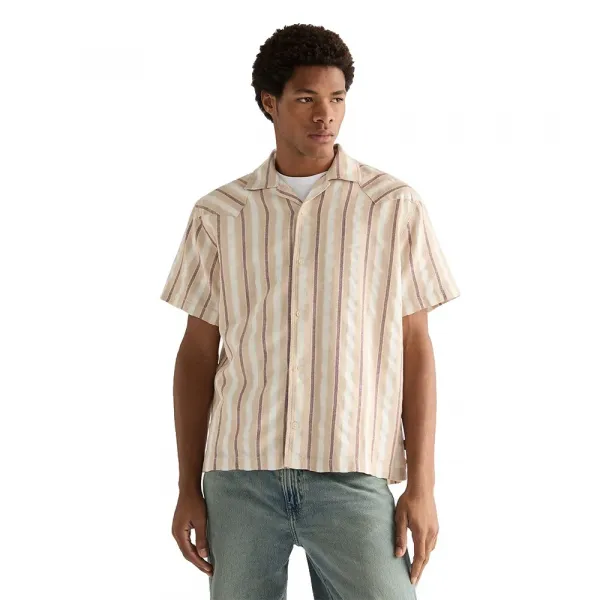 하루 종일 착용하기에 이상적인 이 반팔 리조트 셔츠는 시선을 사로잡는 올오버 스트라이프 디자인을 자랑합니다.
