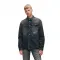 앞면, 커프스, 포켓의 스터드 잠금 장치, 두 개의 플랩 가슴 포켓, 약간 둥근 밑단이 특징입니다.