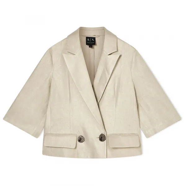 두 개의 특수 버튼으로 여닫는 더블 브레스트 여밈이며, 작은 플랩 포켓이 있고 밑단은 직선입니다.