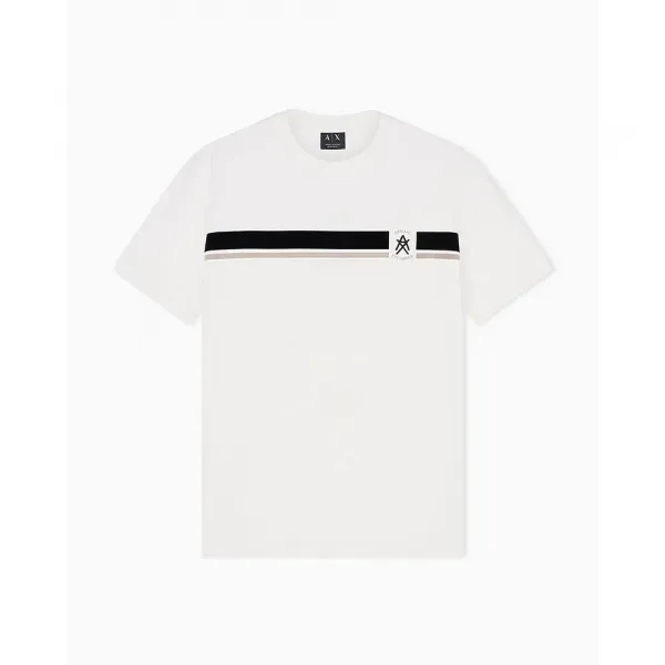중앙에는 고급스러운 자수 스탬프 형태로 된 시그니처 아르마니 익스체인지 로고가 있습니다.