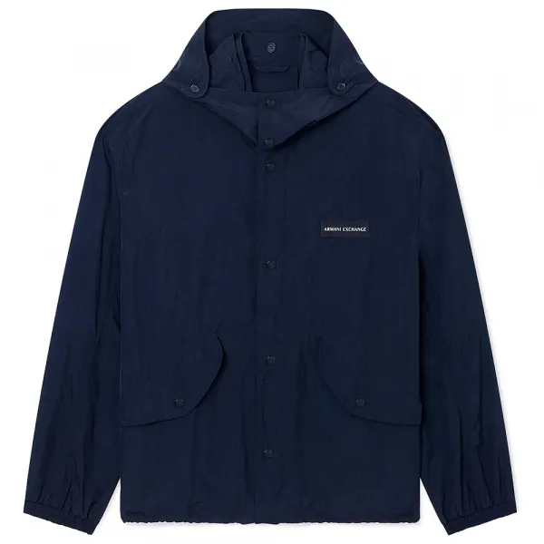 주요 클로저 시스템은 프리미엄 메탈릭 스냅 버튼으로 구성되어 있으며, 각 버튼에는 상징적인 아르마니 익스체인지 로고가 새겨져 있어 깔끔하고 안전한 전면을 제공합니다.
