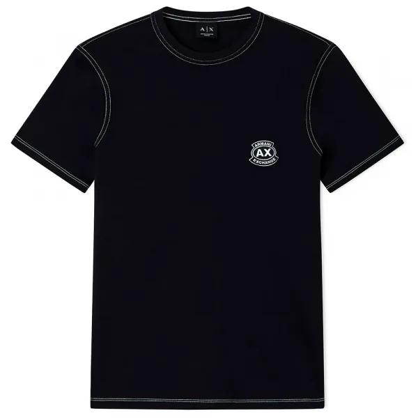 --- 기술 사양: * 제품 코드: XM002455_AF10358 * 브랜드: 아르마니 익스체인지 * 성별: 남성 * 카테고리: 의류 * 하위 카테고리: 티셔츠 * 소재: 면 * 넥라인: 라운드 넥 / 크루 넥 * 소매: 반팔 * 패턴: 기본 * 디테일: 대비되는 스티치, 가슴 로고 패치
