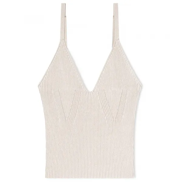 V넥라인, 조절 가능한 얇은 스트랩, 크롭 기장의 민소매 탑.