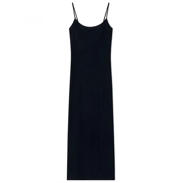 얇은 조절 가능한 스트랩과 뒷면의 안쪽 지퍼, 중앙 하단 슬릿이 있는 롱 바디콘.