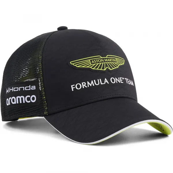 상세 정보: 트러커 캡 스타일 랜스 스트롤이 착용한 레플리카 드라이버 디자인 크라운과 바이저에 엠보싱 디테일 드라이버 넘버 및 로고 디테일 푸마 캣 로고