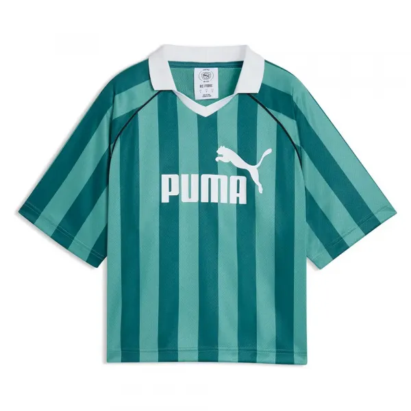 가슴의 푸마 no1 로고, 레트로 스포티한 룩을 위한 폴로 넥 디자인.