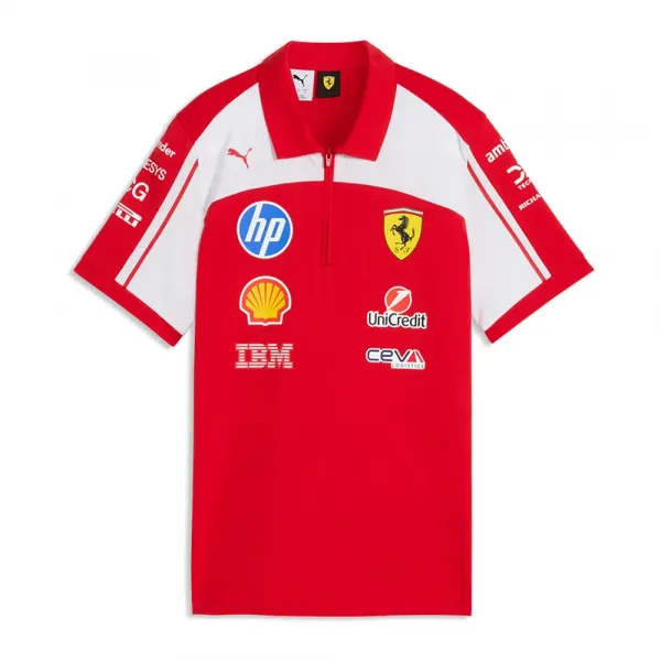 흰색과 빨간색으로, 이 폴로셔츠는 현대적인 퍼포먼스 렌즈를 통해 스쿠데리아 페라리의 유산을 담고 있습니다.
