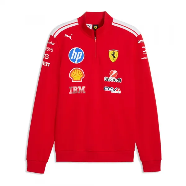 상세 정보 핏: 레귤러 메인 소재 유형: 프렌치 테리 넥: 칼라 긴소매 여밈: 하프 지퍼 길이: 레귤러 스쿠데리아 페라리 브랜딩 디테일.