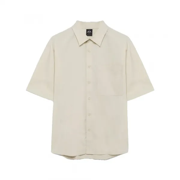 특징: - 면 및 폴리에스터 셔츠 - 클래식 셔츠 칼라 디자인 - 앞 버튼 여밈 - 드롭 숄더 - 가슴 패치 포켓 - 측면 분리형 비스듬한 옆트임 - 물결 모양 밑단 - 뒷요크 디자인 - 앞면 토널 자수 오클리 바크 로고 - 레귤러 핏 사양: - 소재: 면 60%, 재활용 폴리에스터 40% - 무게: 100g
