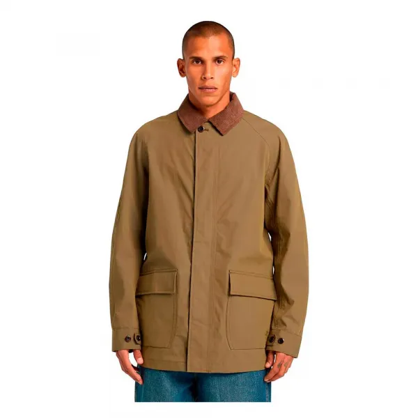 72% 면과 28% 나일론 혼방 소재에 전체 지퍼 여밈, 이중 접근 포켓, 조절 가능한 커프스, 코듀로이 칼라가 특징입니다.