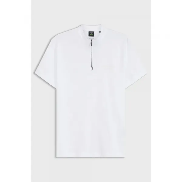 특징: - 커프스: 자체 원단 커프스 - 길이: 표준 길이 - 핏: 레귤러 핏 - 네크라인: 스탠드 칼라 - 소매 길이: 반팔 - 상단 잠금: 지퍼 잠금 사양: - 소재: 100% 코튼