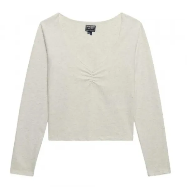 저희 애슬레틱 에센셜 개더드 롱슬리브 탑은 편안함과 은은한 우아함을 결합하여 클래식한 V넥이 특징이며, 일상복으로 완벽하게 활용할 수 있습니다.