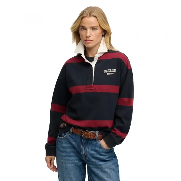 헤리티지 스트라이프 럭비 탑으로 편안한 스포티한 분위기를 당신의 진정한 옷장에 더하세요.