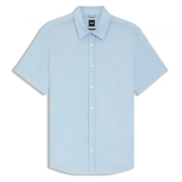 특징: - 슬림핏 - 켄트 칼라 - 커프스 없음 - 표준 길이 사양: - 소재: 리넨 85%, 엘라스토멀티에스터 15% 관리: - 찬물 기계 세탁 - 표백제 사용 금지 - 건조기 사용 금지 - 저온 다림질 - 드라이클리닝만 가능