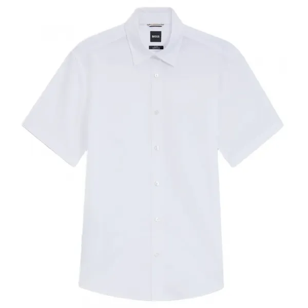 특징: - 슬림핏 - 켄트 칼라 - 커프스 없음 - 표준 길이 사양: - 소재: 리넨 85%, 엘라스토멀티에스터 15% 관리: - 찬물 기계 세탁 - 표백제 사용 금지 - 건조기 사용 금지 - 저온 다림질 - 드라이클리닝만 가능
