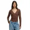버튼 여밈이 있는 프릴 V넥.