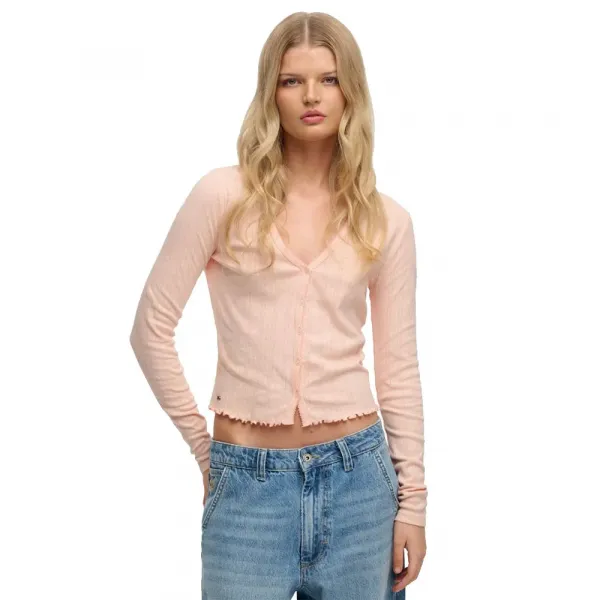 여성스러운 V넥과 섬세한 포인트 립 짜임은 세련된 느낌을 더하며, 슬림핏은 매끈한 실루엣을 만들어줍니다.