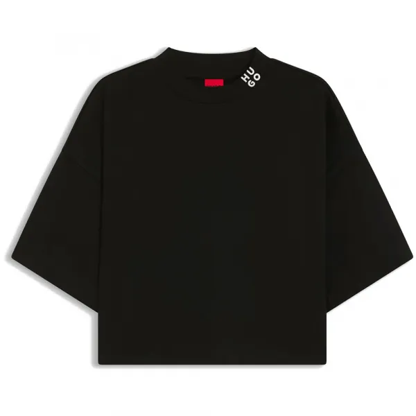 HUGO Damelody 티셔츠는 모든 얼굴형에 어울리는 다양성과 시대를 초월하는 디자인 요소인 클래식한 라운드 크루 넥을 특징으로 합니다.
