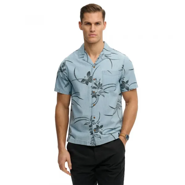 헤리티지 느낌이 살아있는 고급 직조 면으로 제작되어, 해변에서의 수영복 반바지나 해안가 산책 시 린넨 바지와도 자연스럽게 잘 어울리는 셔츠입니다.