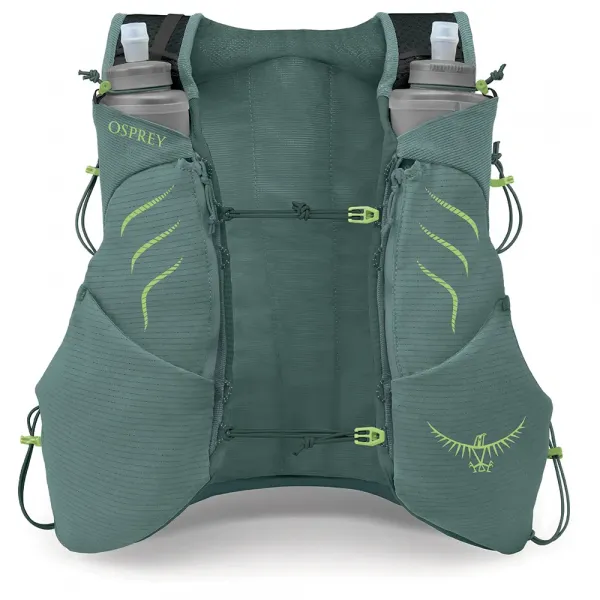 500ml 하이드롤릭스™ 소프트 플라스크 두 개, 세 가지 폴 휴대 옵션, 조끼를 벗지 않고도 장비에 빠르게 접근할 수 있는 통합 패스스루 및 상단 포켓이 있습니다.