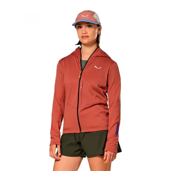 몸에 꼭 맞는 후드와 가볍고 속건성이 뛰어난 브러시드 폴리에스터 섬유(100% 재활용)를 사용하여 보온성을 높이고 원단 무게를 줄였습니다.