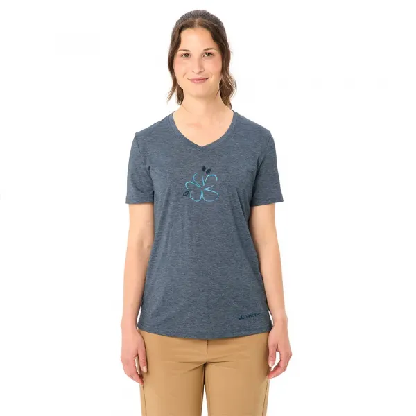 장식적인 요소, V넥, 앞면의 예쁜 자수 디테일이 있어 이 티셔츠는 하이킹과 당일 여행에 기능적일 뿐만 아니라 일상복으로도 관리가 쉬운 의류입니다.