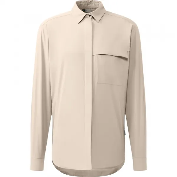 전면 버튼 개방, 가슴 포켓, 롤업 소매가 특징입니다