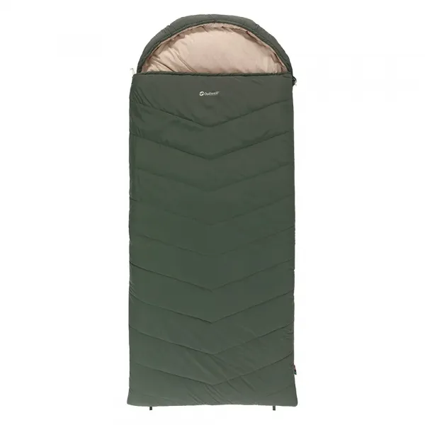매우 부드러운 폴리에스터 쉘과 오리털 같은 중공 섬유 충전재로 제작된 이 침낭은 고급스러운 느낌을 제공합니다.