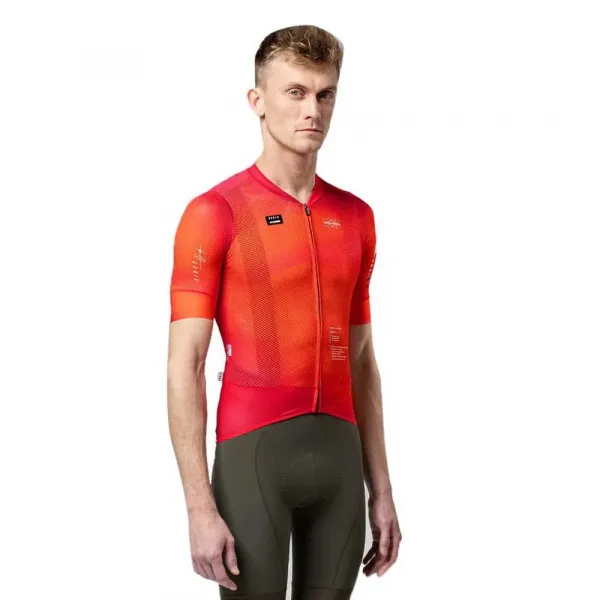 전면의 공기 저항을 줄이고 후면의 공기 흐름을 촉진하기 위해 전략적으로 배치된 손바느질 원단의 독특한 조합을 사용합니다.
