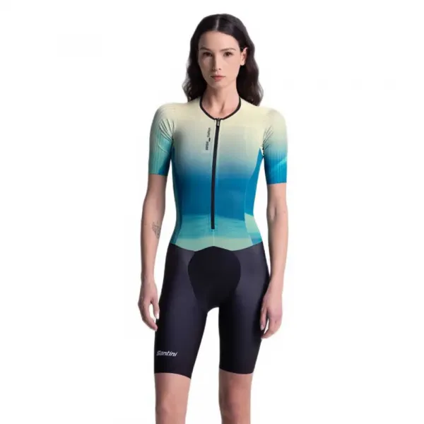 특징: - 매끄러운 핏 - 더 길어진 소매와 다리의 에어로다이내믹 디자인 - 풍동 테스트 원단 사용 - UPF50+ 원단으로 제작된 상의 - 몸이 팔에 밀착되도록 접착 파이핑 처리된 하단 소매 - 로우컷 압축 원단과 다리 하단 내부 그립이 있는 하의 - 사타구니 부분의 외부 미끄럼 방지 그립 - 타워 젤 코어 기술을 적용한 장거리 트라이애슬론 전용 IMG 패드 - 자외선 차단: 5/5 - 공기 역학: 5/5 - 신축성: 4/5 - 충격 흡수: 4/5 관리 지침: - Santini 사이클링 및 트라이애슬론 의류 관리 방법 - 저희가 오랜 세월 동안 습득한 몇 가지 비결을 통해 최고의 성능을 유지하고 오래 사용할 수 있습니다.