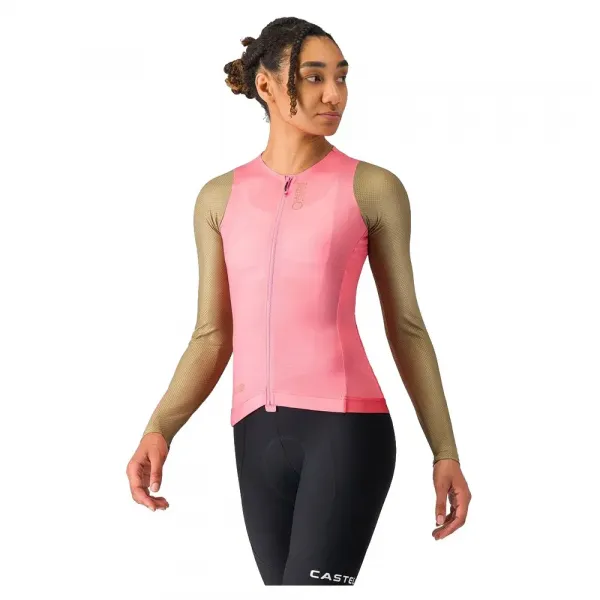 레이스 핏 — 고강도 로드 라이딩 및 레이싱에 이상적 긴팔 여름용 원단으로 시원한 날씨에 이상적 각 부위의 편안함을 최적화하기 위해 몸통과 소매에 대비되는 원단으로 설계 소매와 몸통 원단은 통기성과 공기역학 성능을 최적화 목 주변의 핏을 향상시키는 컨투어 칼라 구조 귀중품을 위한 네 번째 지퍼 보안 주머니가 있는 3개의 뒷주머니 사용하기 쉬운 지퍼 풀이 있는 풀 길이 YKK® Vislon® 지퍼 저지 위치를 유지하기 위해 허리에 실리콘 처리된 엘라스틱.