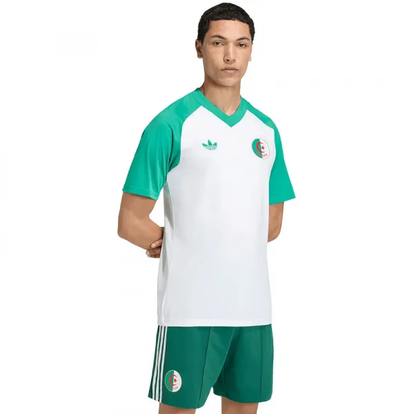 크루넥 칼라 바로 아래 매끄러운 인터록 원단에 프린트된 중앙 3 바 로고는 축구팀에 대한 자부심과 그 나라를 대표하는 열정을 보여주는 국기 위에 자리 잡고 있습니다.
