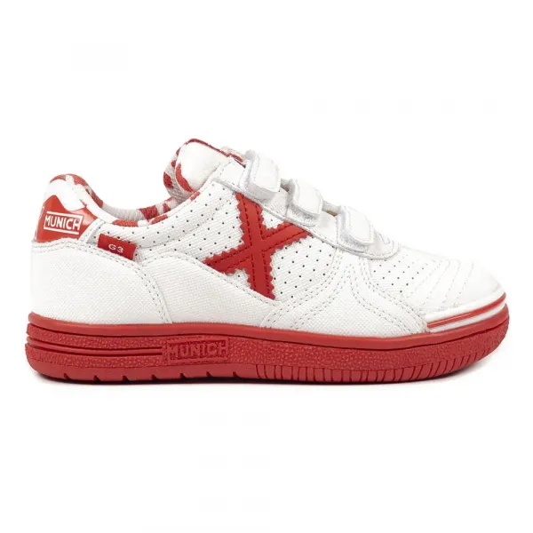 전체가 빨간색인 고무 밑창은 매끄러운 표면에서 탁월한 접지력을 제공하여 실내 축구 경기, 학교 운동장에서의 달리기, 또는 방과 후 활동을 완벽한 안전과 스타일로 즐기기에 완벽한 신발입니다