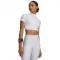 그래서 땀을 흡수하고 신축성을 더해 어떤 상황에서도 움직일 수 있도록 이 크롭 반팔을 더욱 편안하게 만들었습니다.