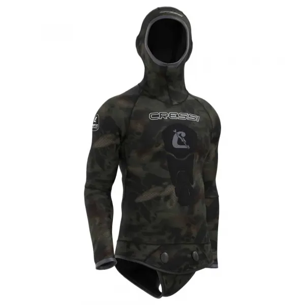 기술 사양: 두께: 5 mm 대상 사용자: 성인, 남성 주요 활동: 작살 낚시 제품 유형: 재킷 내부 안감: 최대의 보온 및 유연성을 위한 오픈 셀 외부: 포시도니아 사진 위장 무늬의 내구성 있는 안감 잠금 시스템: 지퍼 없음 이중 클립 잠금 방식의 조절 가능한 비버테일 후드: 뛰어난 보온성을 위해 완전 통합 가슴 보호대: 오버사이즈, 미끄럼 방지 흉골 로딩 패드 컷: 인체 공학적 착용감을 위한 해부학적 사전 성형 디자인 솔기: 뛰어난 방수 및 내구성을 위한 접착 및 블라인드 스티치 커프스: 물 유입을 방지하기 위한 얼굴 및 손목의 부드러운 밀봉