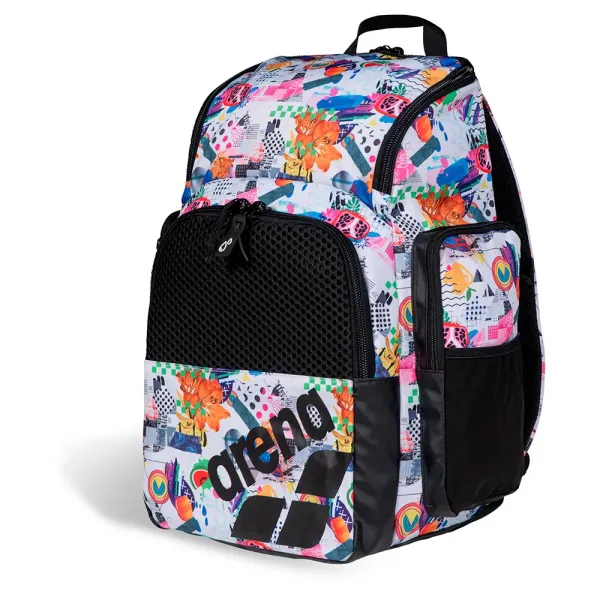수영장, 체육관 또는 여가 시간에 다용도로 사용할 수 있는 스타일리시한 동반자인 실용적인 arena One Go Allover 수영 스포츠 백팩 35L는 상단 개방형 디자인으로 소지품을 쉽게 넣고 꺼낼 수 있습니다.