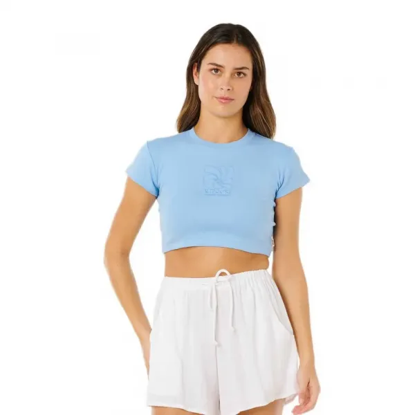 베이비 티 핏과 자수 디테일이 서핑 필수템인 퍼시픽 코스트 베이비 티를 완성하며, 깔끔하고 모던한 룩을 위해 우븐 플래그 라벨로 마무리했습니다.