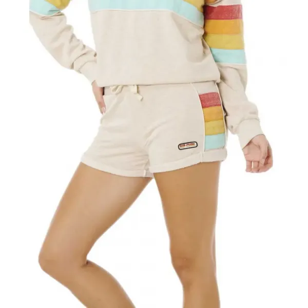 의류 번아웃 워싱, 대비되는 드로코드, 컷앤소 패널, 우븐 배지, 롤드 헴 디테일로 일상복으로 적합합니다.