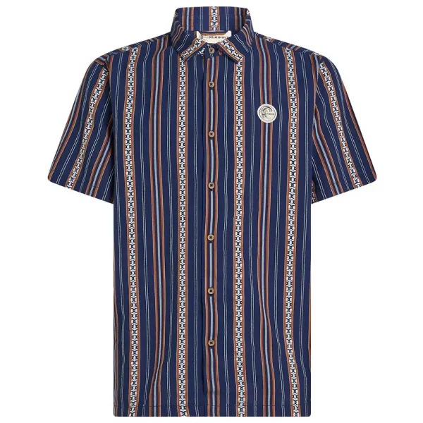 100% 면 직조 자카드 원단으로 제작되었으며, 전면적인 숄더 실루엣, 돋보이는 스트라이프 디자인, 그리고 상징적인 서클 서퍼 로고가 특징입니다.