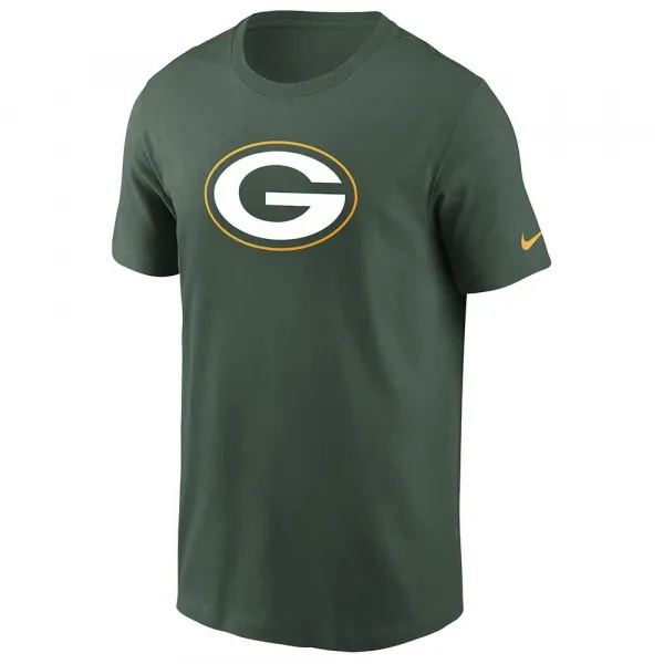 어디를 가든 그린베이 패커스 정신을 보여줄 수 있는 완벽하고 쉬운 방법입니다 --- 기술 사양 및 세부 정보 남성 나이키 로고 에센셜 티셔츠.
